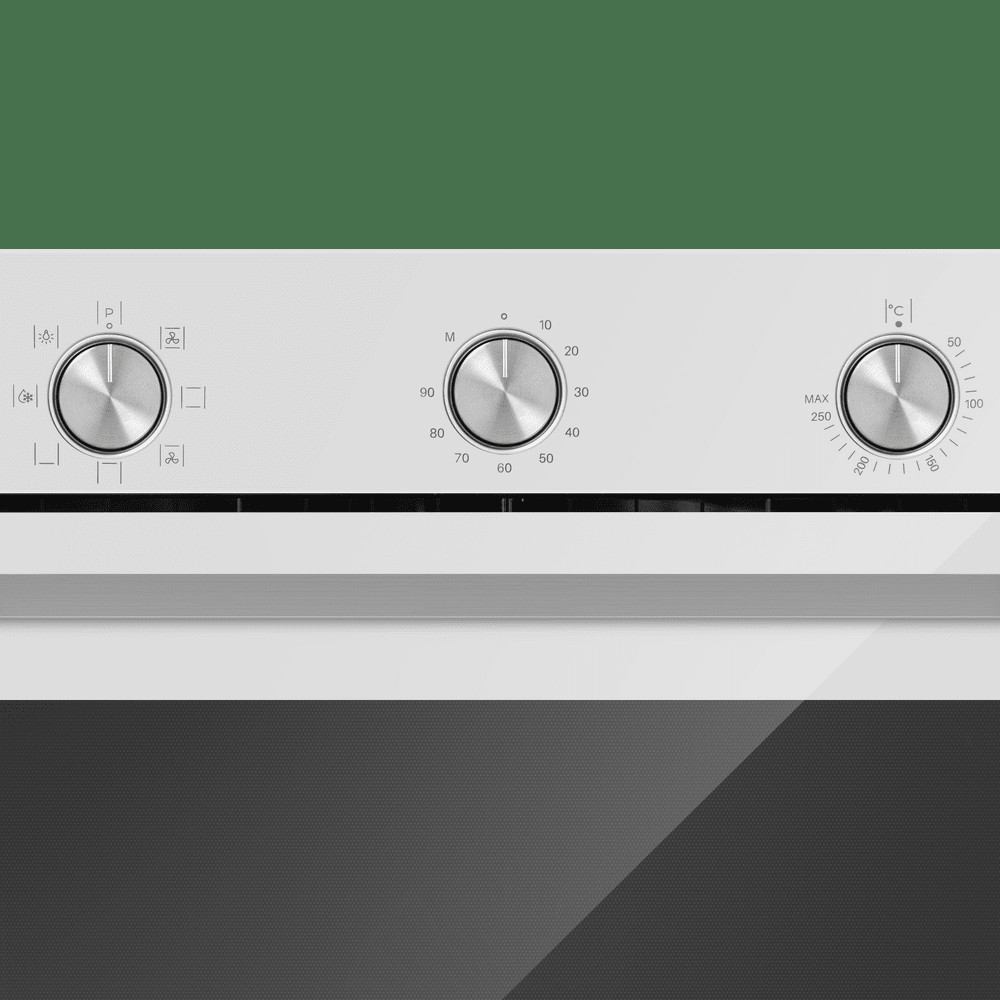 Управлять духовкой просто – механические переключатели с утапливаемыми ручками надежны и интуитивно понятны. Встроенный таймер поможет не пропустить момент готовности блюда. А когда нужно проверить, как идёт процесс, достаточно бросить взгляд через тройное стекло дверцы – мощная подсветка прекрасно освещает всю камеру.