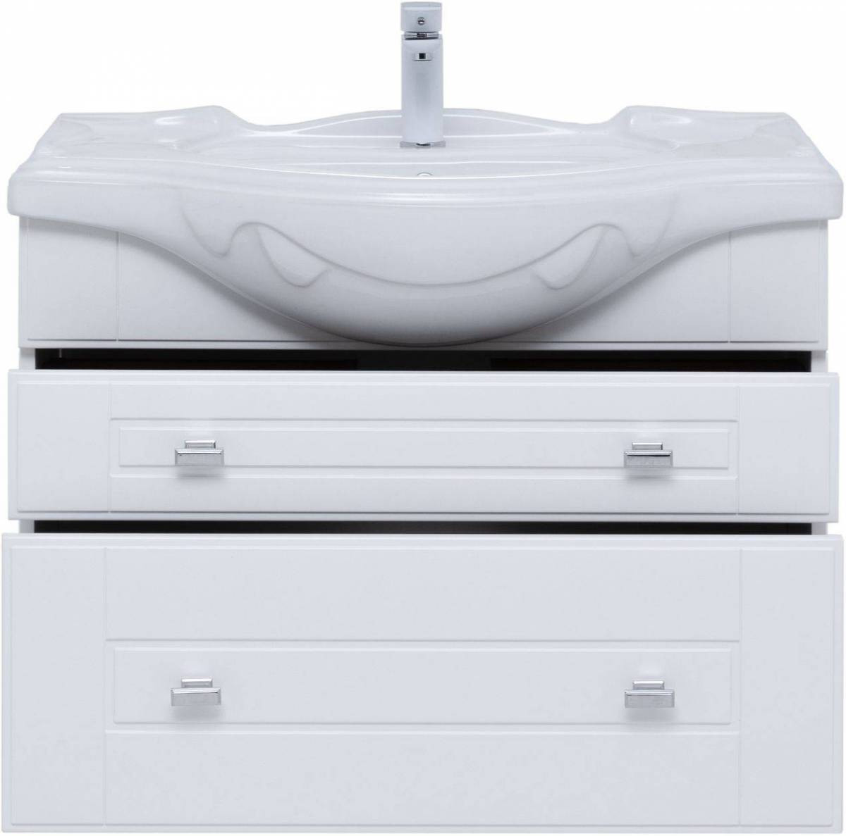 Тумбы оснащены специальной пластиковой рамой, которая надежно защищает вырез под сифон,
