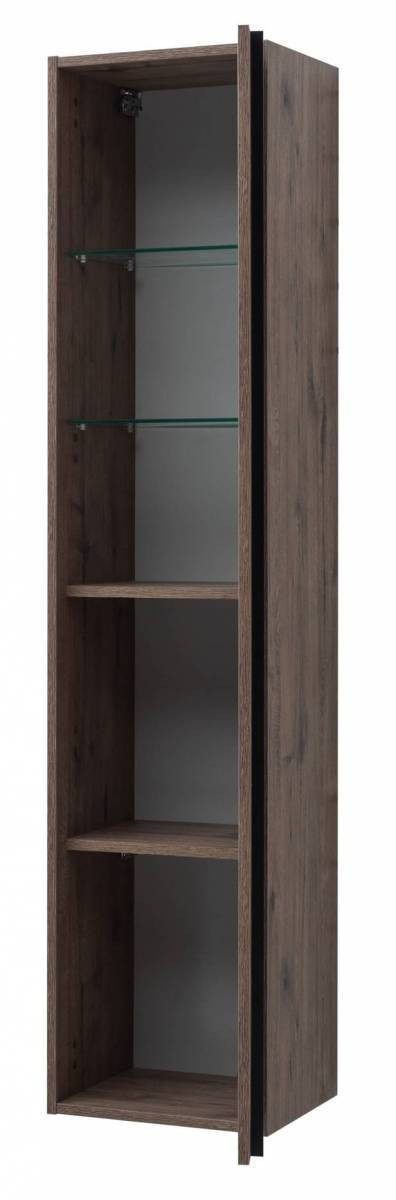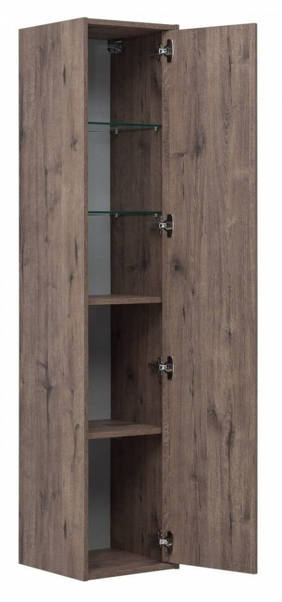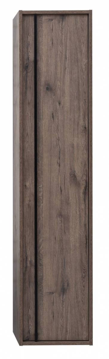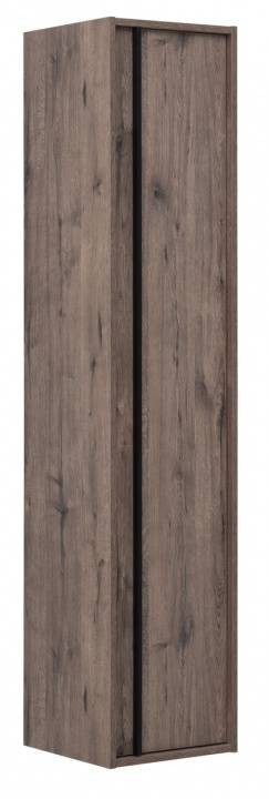Шкаф-пенал для ванной Aquanet Lino 35 в цвете "дуб веллингтон" - яркий пример мебели в эко-стиле. Яркая, приятная глазу цветовая гамма плюс текстурная поверхность, максимально приближенная по тактильным ощущениям к натуральной древесной поверхности, является визитной карточкой коллекции.Пенал подвесной, довольно высокий - 1 метр 60 см, вмещает в себя сразу пять полочек, две из которых, самые верхние, - стеклянные. Дверца одна. Тонкая изящная ручка тянется по всей высоте шкафа-пенала.во всю ширину ящиков. Именно ручка находится в одной плоскости с боковыми стенками, фасад словно утоплен внутрь корпуса.. Выглядит стильно. К тому же, безопасно, так как нет выступающих деталей. Кстати, ручки отечественного производства. Сделаны из алюминия, чтобы исключить возможность коррозии, по заказу Aquanet специально для этой коллекции. Сверху на них нанесено эмалевое покрытие.