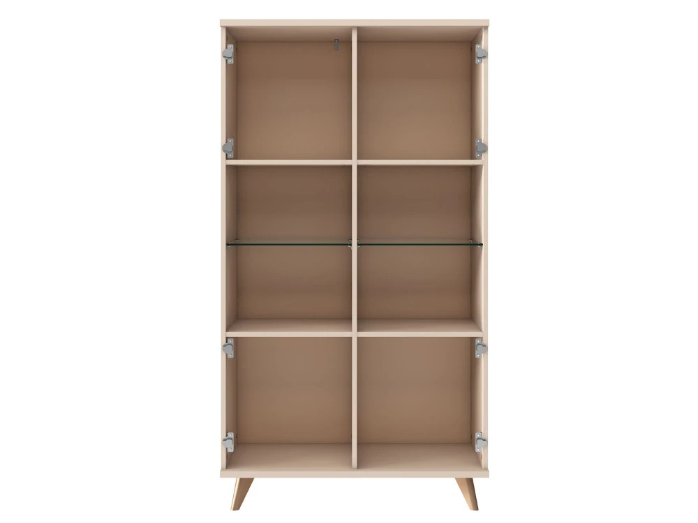 Прозрачная стеклянная вставка на фасаде придаёт конструкции визуальную лёгкость и позволяет деликатно продемонстрировать любимые предметы - книги, декор, посуду. Внутри предусмотрены удобные полки, на которых всё будет на своём месте.