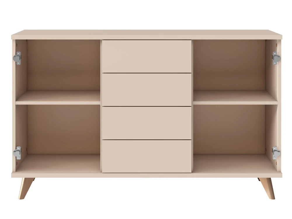 Пластиковые опоры цвета меди придают шкафу лёгкость и добавляют тёплый, стильный акцент, подчеркивая утончённость всей серии.
