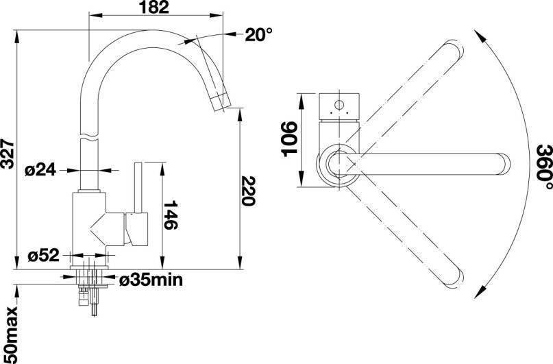 Увеличенный радиус действия благодаря вращающемуся изливу.