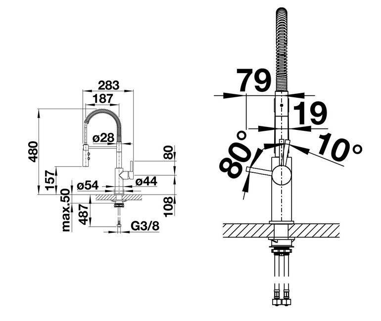 Гибкие соединительные шланги длиной 450 мм и гайкой 3/8 "для особенно простой и безопасной установки