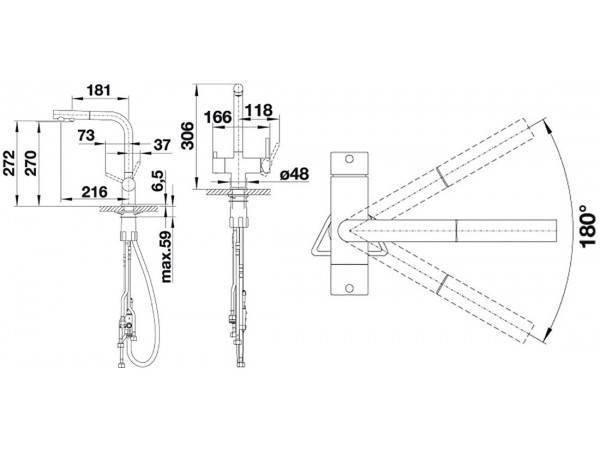 Угол поворота излива: 180 °
