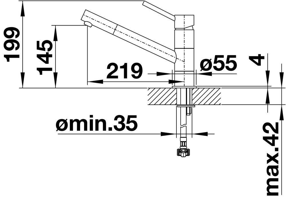 Легкое подключение гибкими шлангами длиной 350 мм с гайкой ⅜“