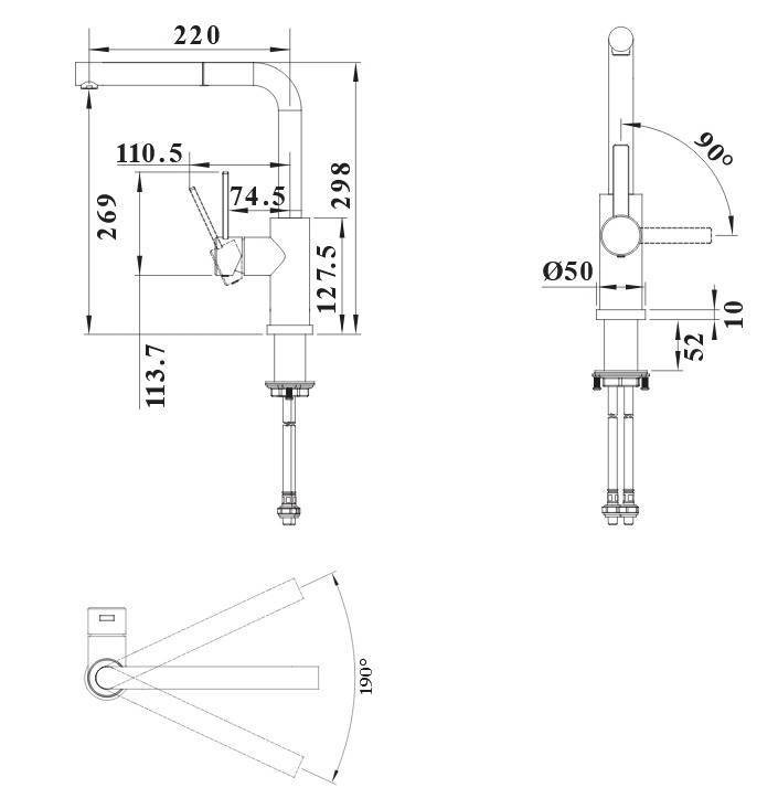 Угол поворота излива: 190 °