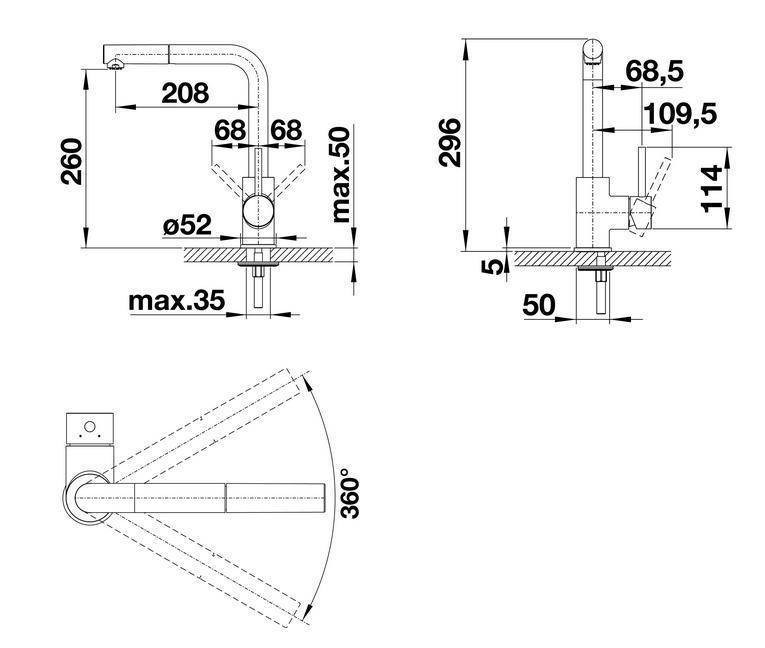 Легкое подключение гибкими шлангами длиной 350 мм с гайкой 1/2“
