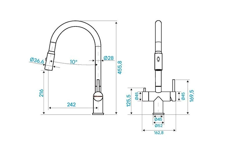 Смеситель KÜCHENSTERN BRUNN-FS объединяет сразу две функции - питьевая и обычная вода из одного смесителя.