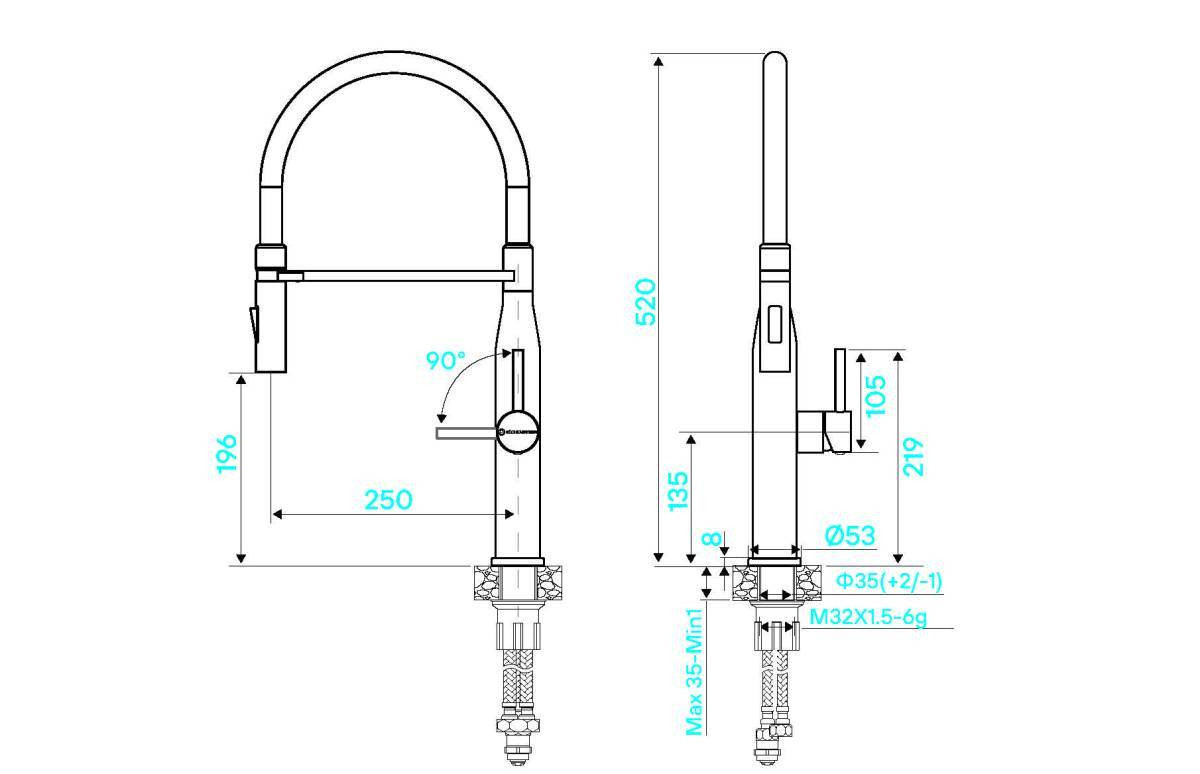 Смесителем KÜCHENSTERN KERN-FE удобно пользоваться , так как он имеет переключение на душ.