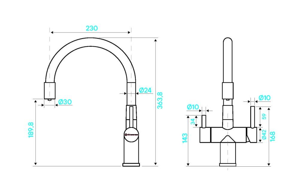 Смеситель KÜCHENSTERN BRUNN-FS объединяет сразу две функции - питьевая и обычная вода из одного смесителя.