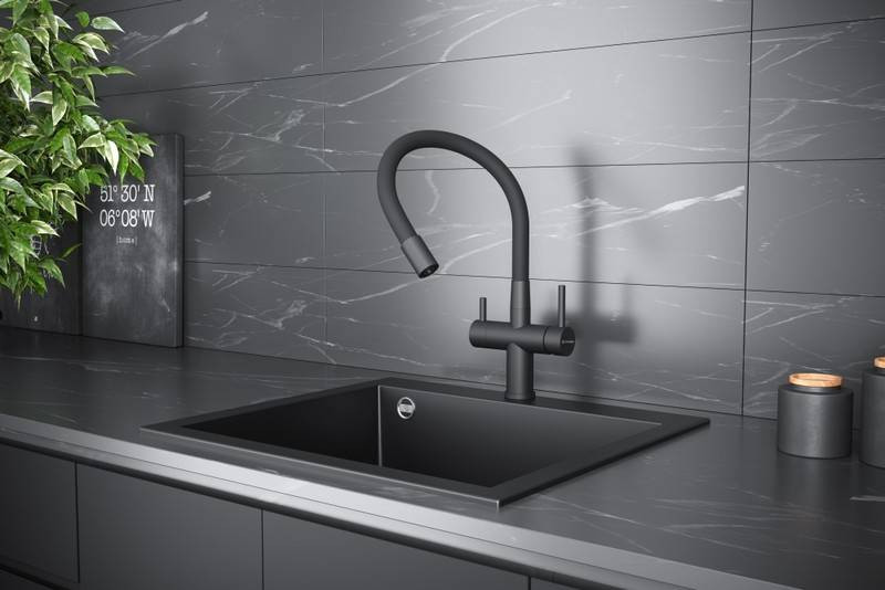 Смеситель KÜCHENSTERN BRUNN-FS объединяет сразу две функции - питьевая и обычная вода из одного смесителя.