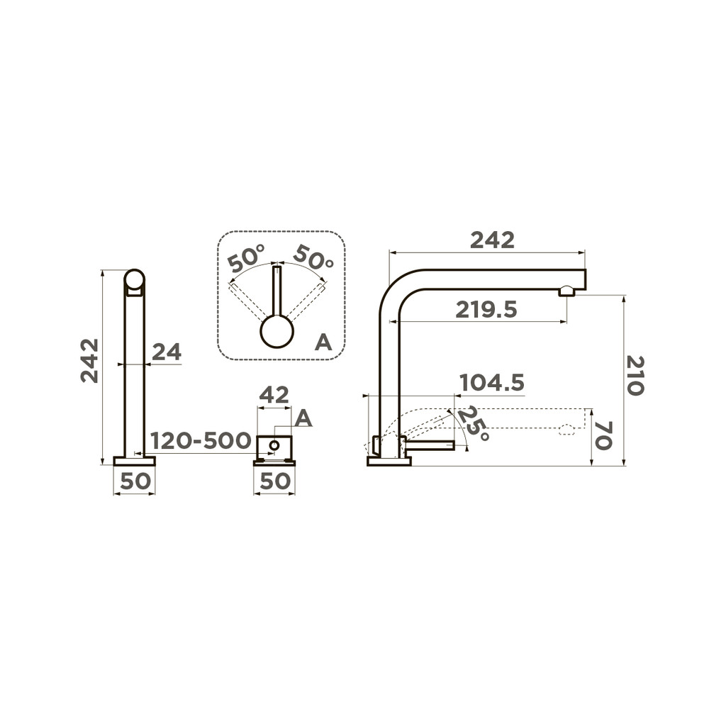 Рычаг регулировки температуры и напора воды вынесен отдельно и может быть установлен в любом месте рядом со смесителем.