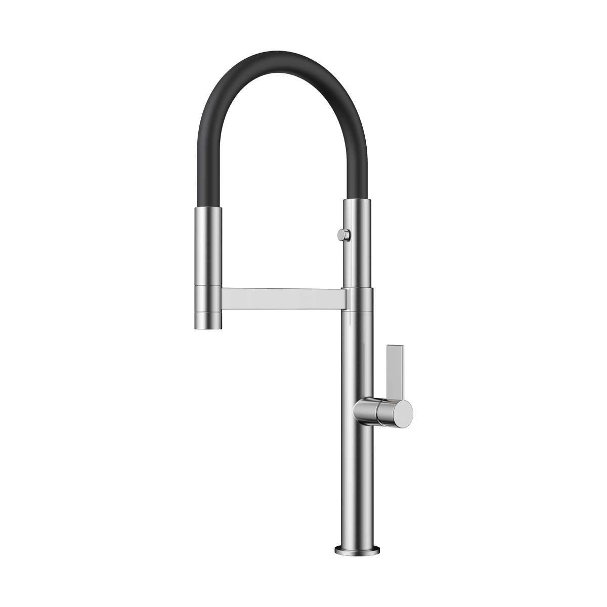 Длина высокого поворотного излива увеличивается по желанию за счёт шланга на магните.