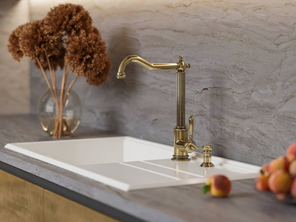Классический дизайн и удобство использования благодаря высокому изливу.
