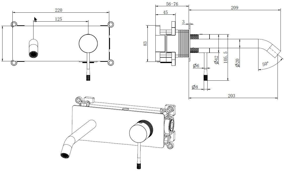 Длина излива, мм: 203