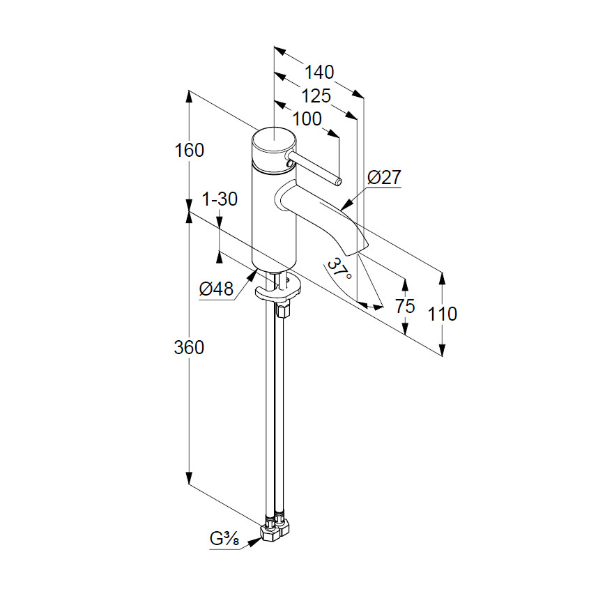 Диаметр подводки: G 3/8