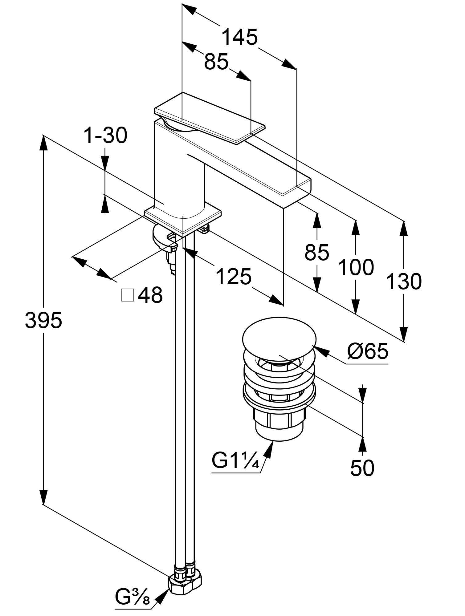 высота излива 85 мм