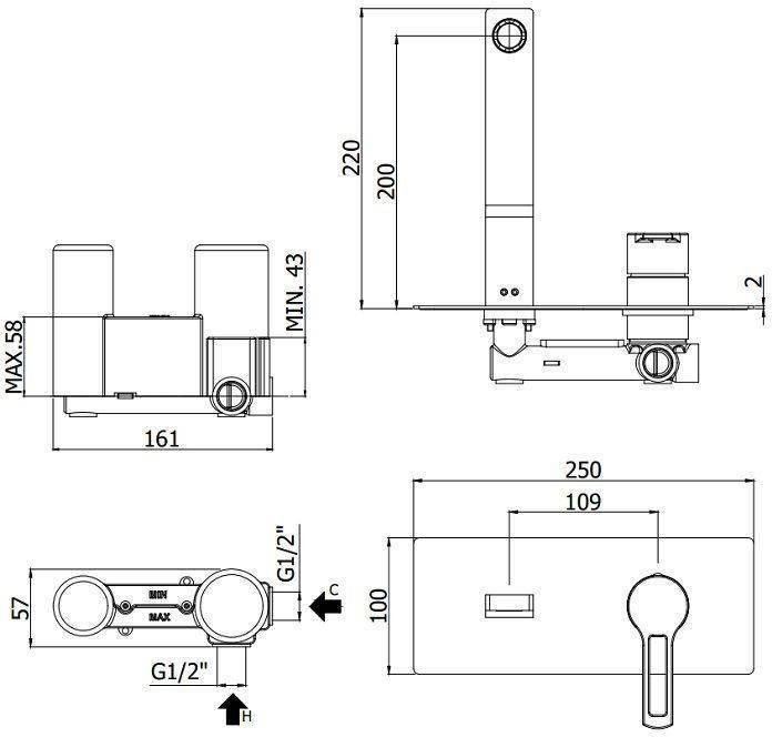 Смеситель для раковины Paffoni Ringo RIN105NO (с внутренней частью)