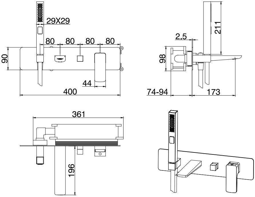 Смеситель для ванны с душем Allen Brau Infinity 5.21007-31 (с внутренней частью) черный матовый