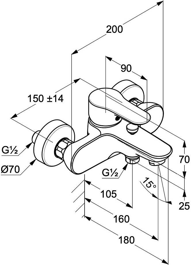 Смеситель для ванны с душем KLUDI OBJEKTA 326530575 (хром, L-16)