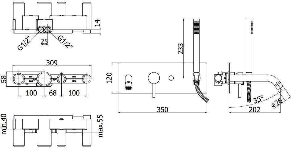 Смеситель для ванны с душем Paffoni Light LIG001NO (с внутренней частью)