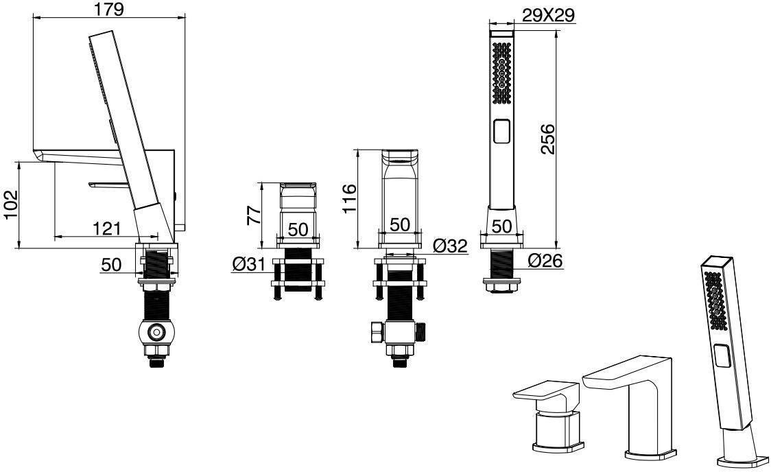 Смеситель на борт ванны Allen Brau Infinity 5.21008-31 черный матовый