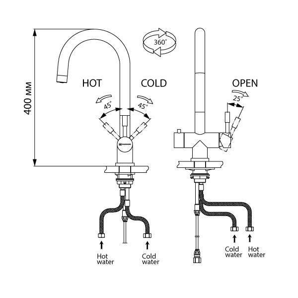 Фильтрованная вода подается по отдельной трубке и не смешивается с водопроводной водой.