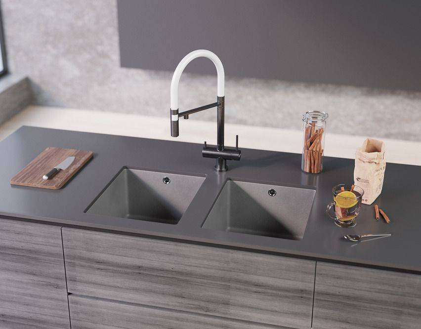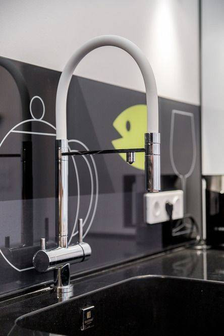 Современный дизайн и удобство использования, благодаря высокому изливу.