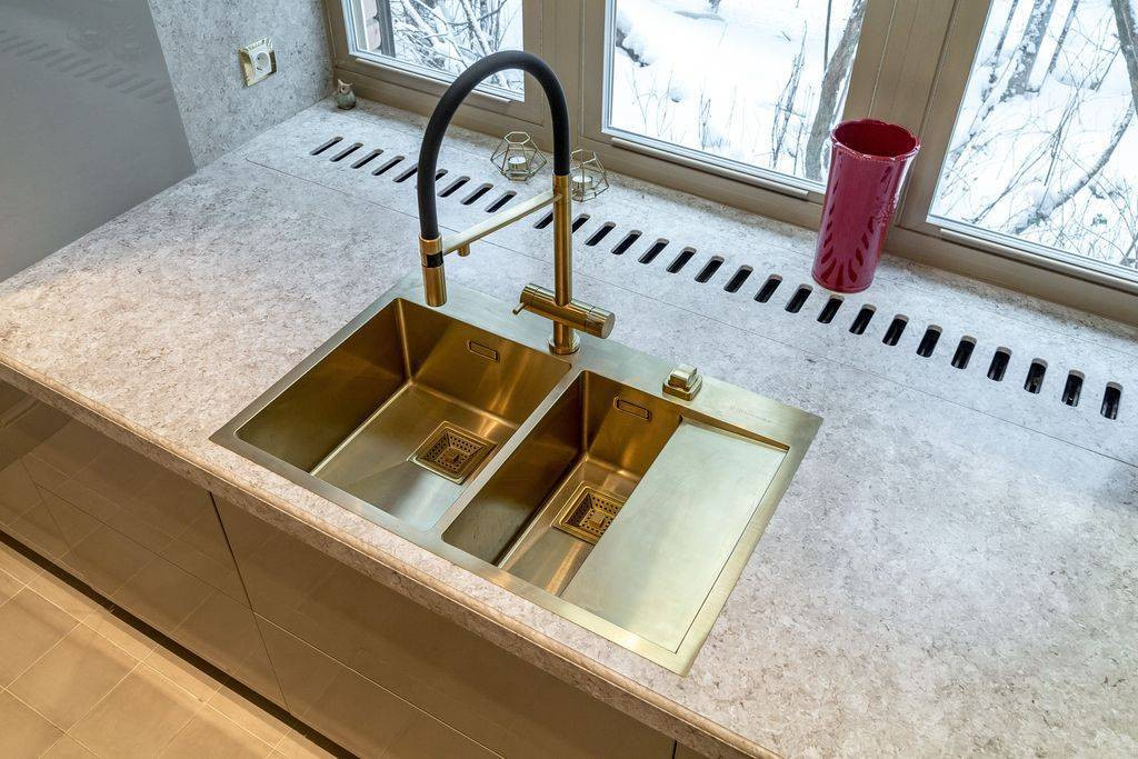 Современный дизайн и удобство использования, благодаря высокому изливу.