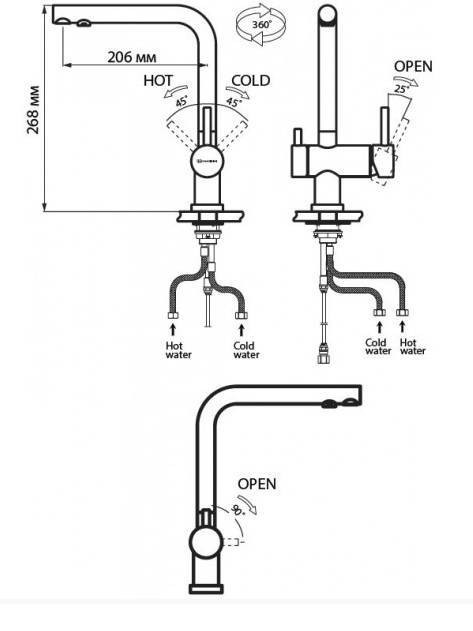 Фильтрованная вода подается по отдельной трубке и не смешивается с водопроводной водой