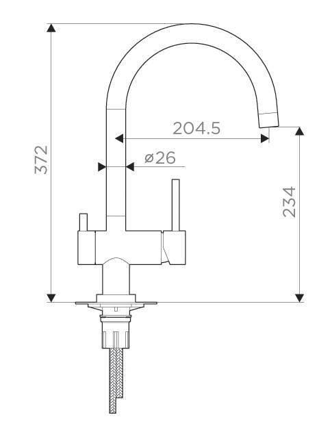 Фильтрованная вода подается по отдельной трубке и не смешивается с водопроводной водой.