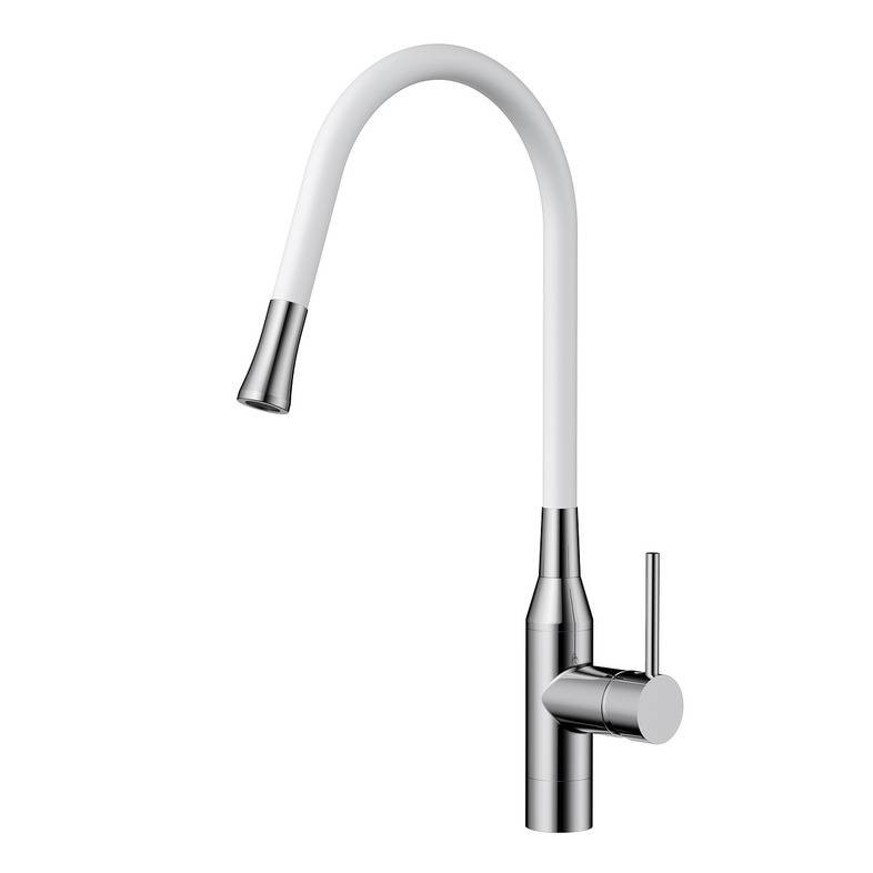 Уникальная конструкция смесителя предусматривает возможность легкой замены цветных шлангов на один из трех вариаций: белый, красный и черный.