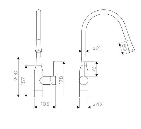 Смеситель выполнен в ультрасовременном стиле и снабжен высоким поворотным шлангом, который при изменении формы всегда остается в устойчивом положении.