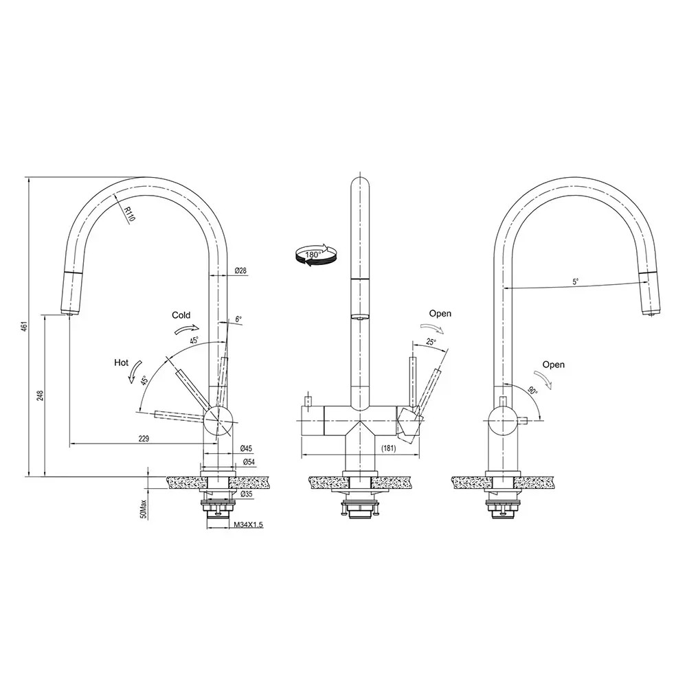 Особенности: Вытяжной шланг до 1800мм