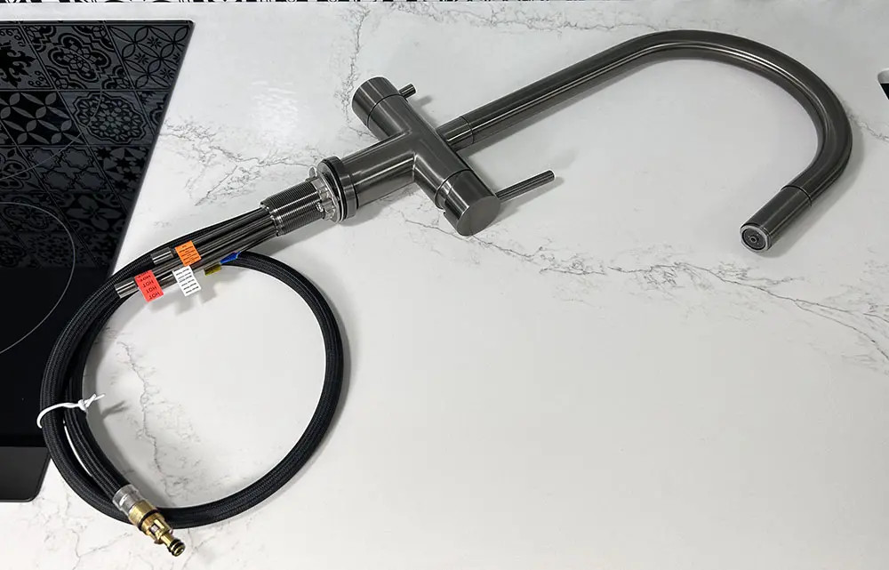 Аэратор Neoperl(Швейцария) гарантирует бесшумную работу и экономит расход воды до 75%. Гибкая нейлоновая подводка TUCAI (Испания). Керамический картридж KEROX(Венгрия) гарантировано не менее 80000 циклов работы. Длинный выдвижной шланг(1800мм) позволяет еще больше увеличить диапазон работы. Корпус из нержавеющей стали высокого стандарта AISI304, что делает его прочным и долговечным.Поверхность сатин с функцией Anti-Fingerprint. На такой поверхности не остаются следы от пальцев. С обратного клапана не капает вода после закрытия потока воды.