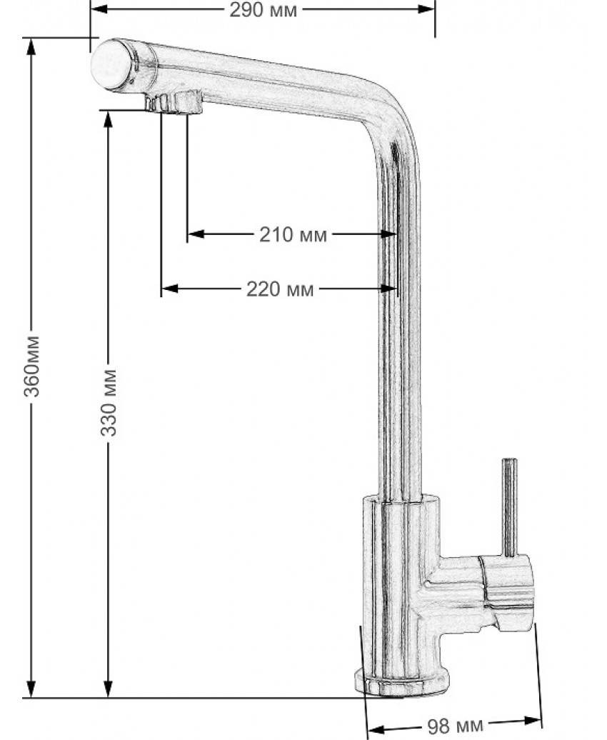 Высота смесителя 360 мм;