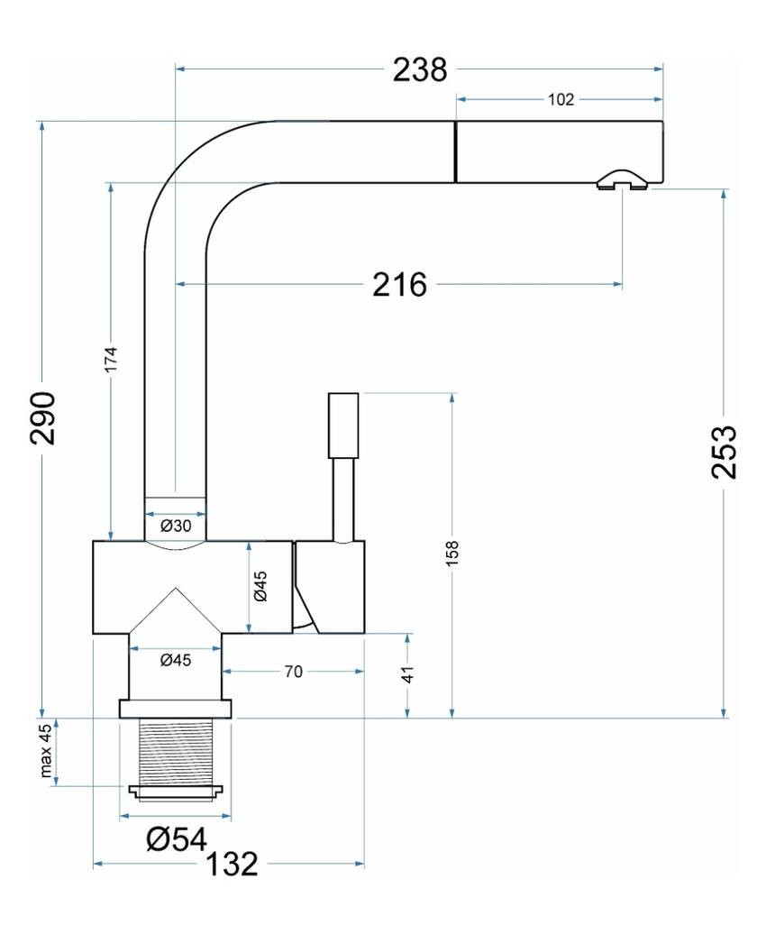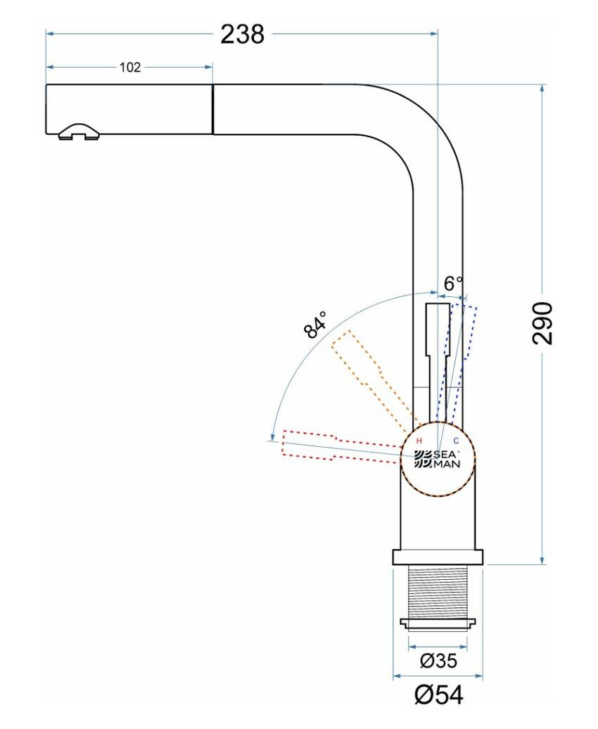 Выдвижной излив: да. Полезная длина выдвижного излива: 800 мм.