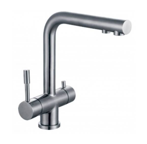 Однозахватный смеситель для кухни из нержавеющей стали с подключением фильтра для питьевой воды.