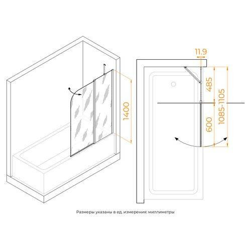 Шторка на ванну RGW SC-011B имеет черный профиль, который подчеркивает стиль и эстетическую привлекательность изделия. Ее высота составляет 1400 мм, что делает ее совместимой с большинством типов ванн. Конструкция створки маятниковая, что позволяет открывать ее как внутрь, так и наружу, обеспечивая максимальную удобство использования.