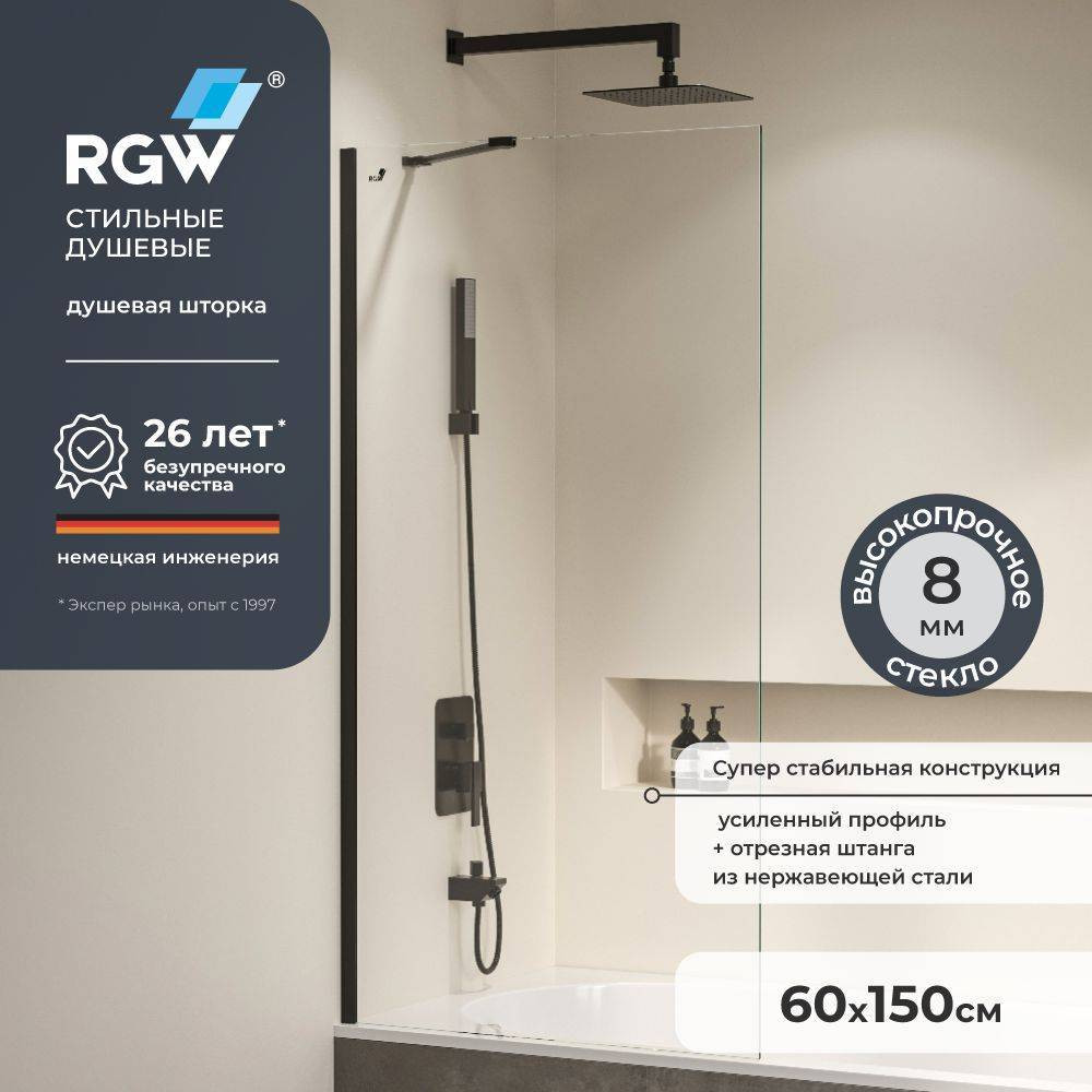 Стеклянная шторка для ванной RGW SC-151-B 60х150 см Чёрный / Прозрачное закаленное стекло 351115106-14