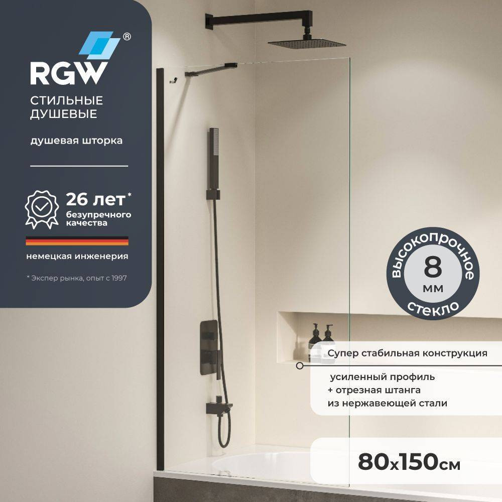 Стеклянная шторка для ванной RGW SC-151-B 80х150 смЧёрный / Прозрачное закаленное стекло 351115108-14
