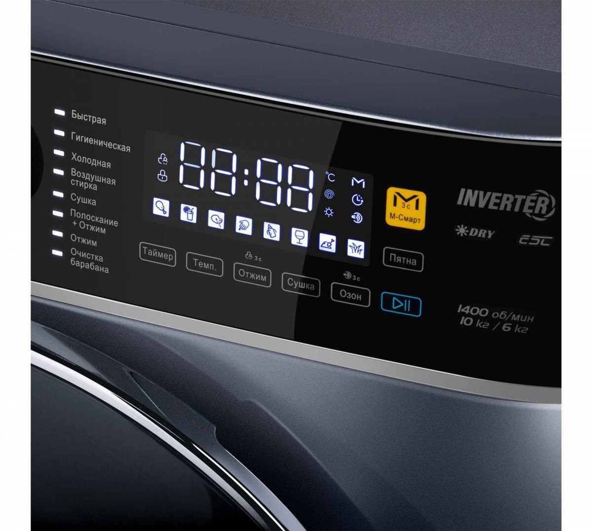 Различные режимы для более эффективной стирки: "М-смарт", "Пятна", "Озон"