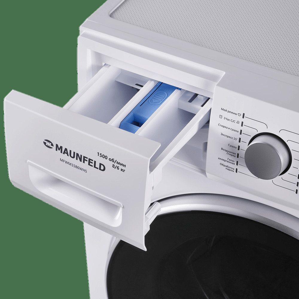 Стиральная машина c сушкой инвертором и паром MAUNFELD MFWM1586WHS