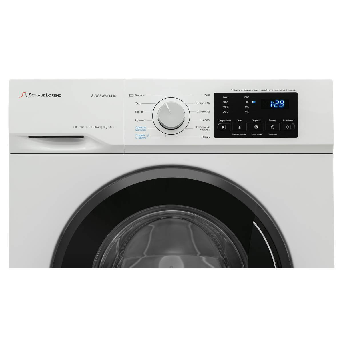 Дополнительные программы: Полоскание+отжим, Отжим, Очистка барабана, Отложенный старт, Предварительная стирка