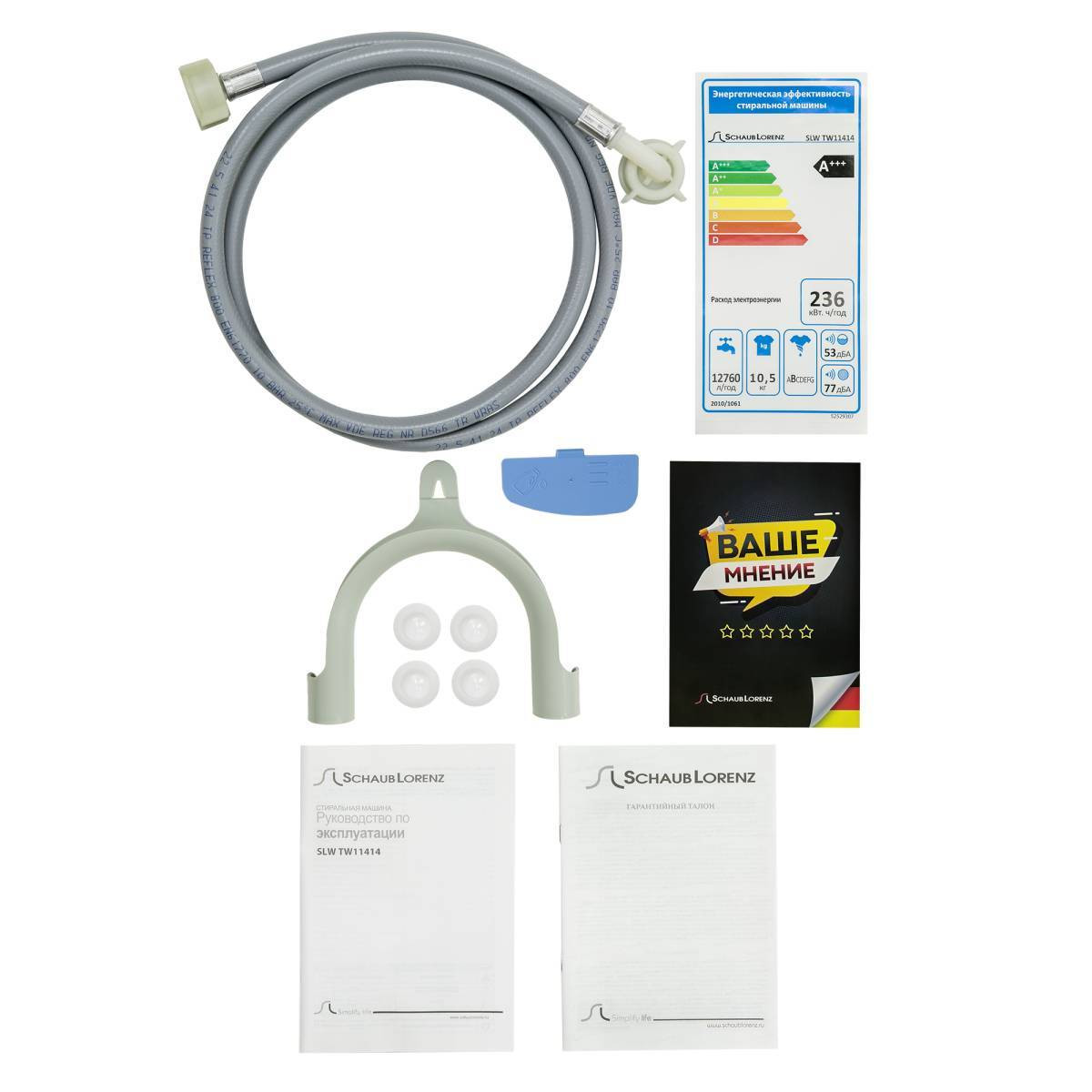 В комплекте: Шланг подачи воды, Сливной шланг, Инструкция по эксплуатации, Пластиковый держатель для сливного шланга