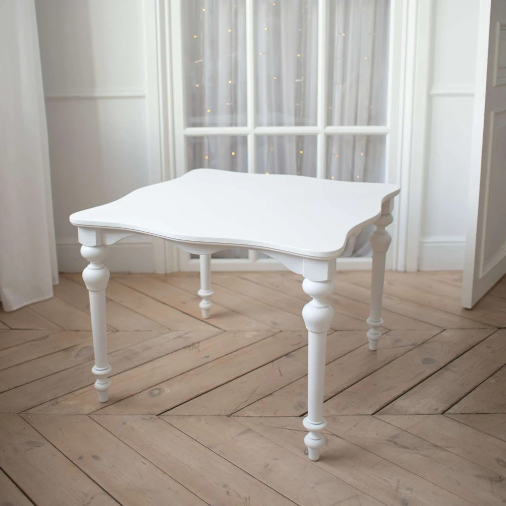 Стол детский Amari Бабочка представляет из себя фигурную столешницу со скругленными плавными формами и точенные ноги массив бука. Размер 750*750 мм, высота 550 мм.