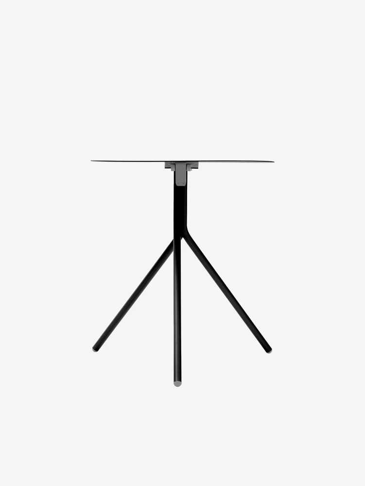 Столешница из листового металла 5мм и ножка, собранная из трёх гнутых стальных труб. Благодаря трём точкам контакта с поверхностью, стол надёжно стоит даже на неровных покрытиях.Лаконичная форма и выразительная геометрия делают его универсальным решением как для внутренних пространств, так и террас. Устойчив к погодным условиям, не боится воды и солнца.