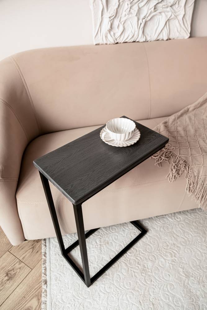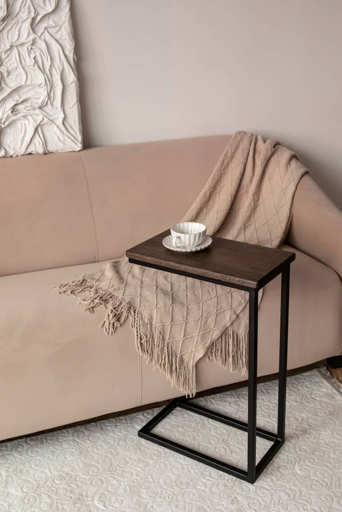 Приставной столик из массива дуба и стали создан для максимального удобства. Легко размещается у подлокотника дивана или кресла — для чашки кофе, книги или ноутбука. Прочное цельносварное основание гарантирует устойчивость, а натуральное дерево — долговечность и экологичность.