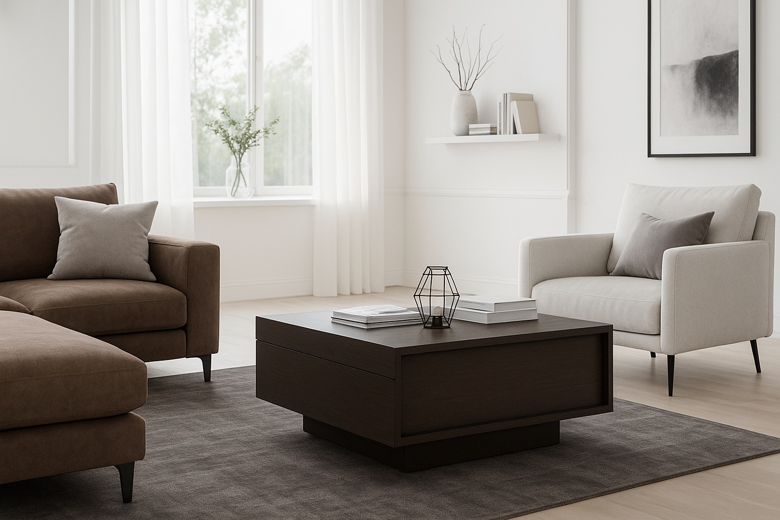Этот столик — не просто акцент в интерьере, а продуманное решение для жизни. Лаконичный дизайн сочетается с многоуровневым функционалом: от выдвижных ящиков до подъёмной столешницы, превращающей зону отдыха в рабочее место или столовую.