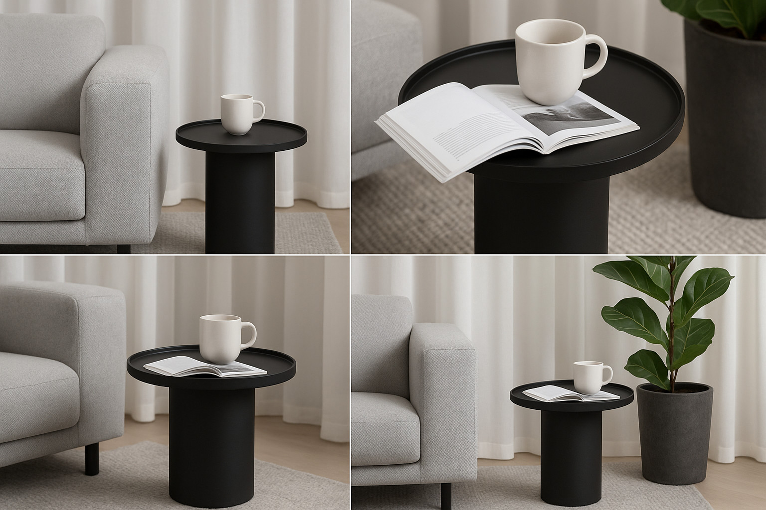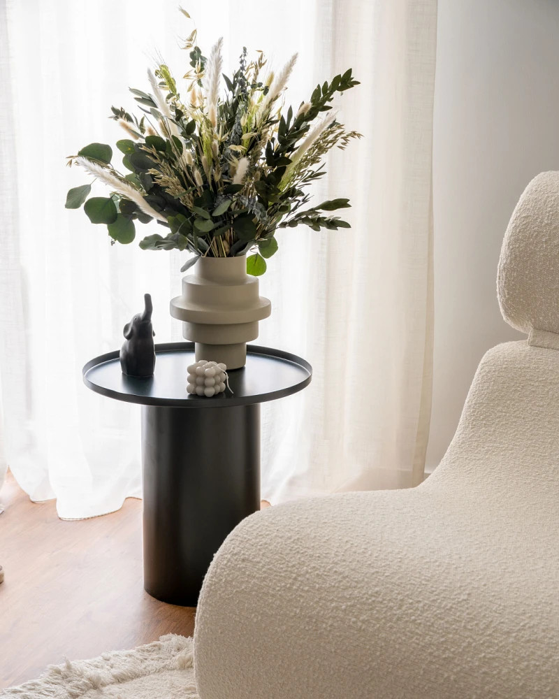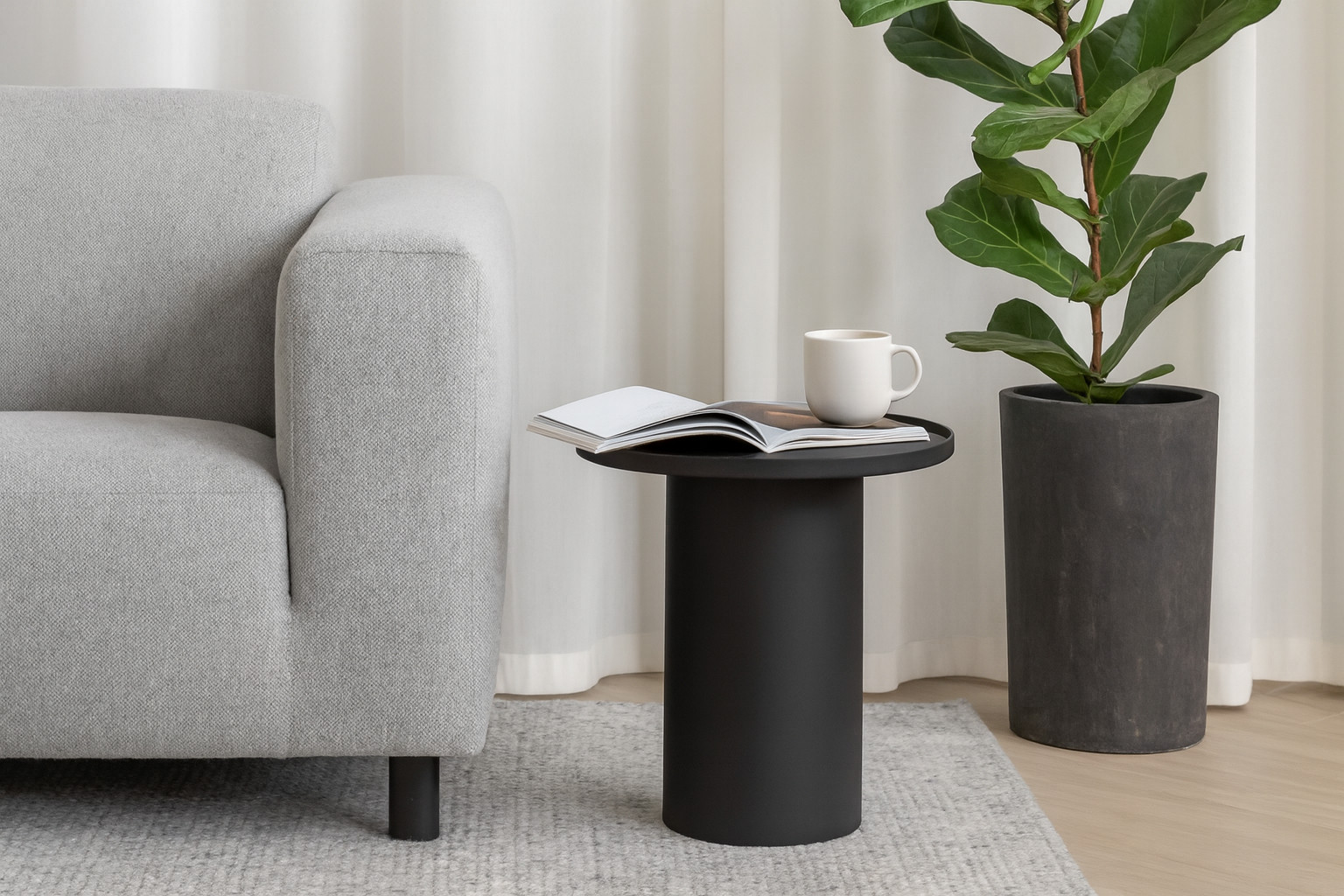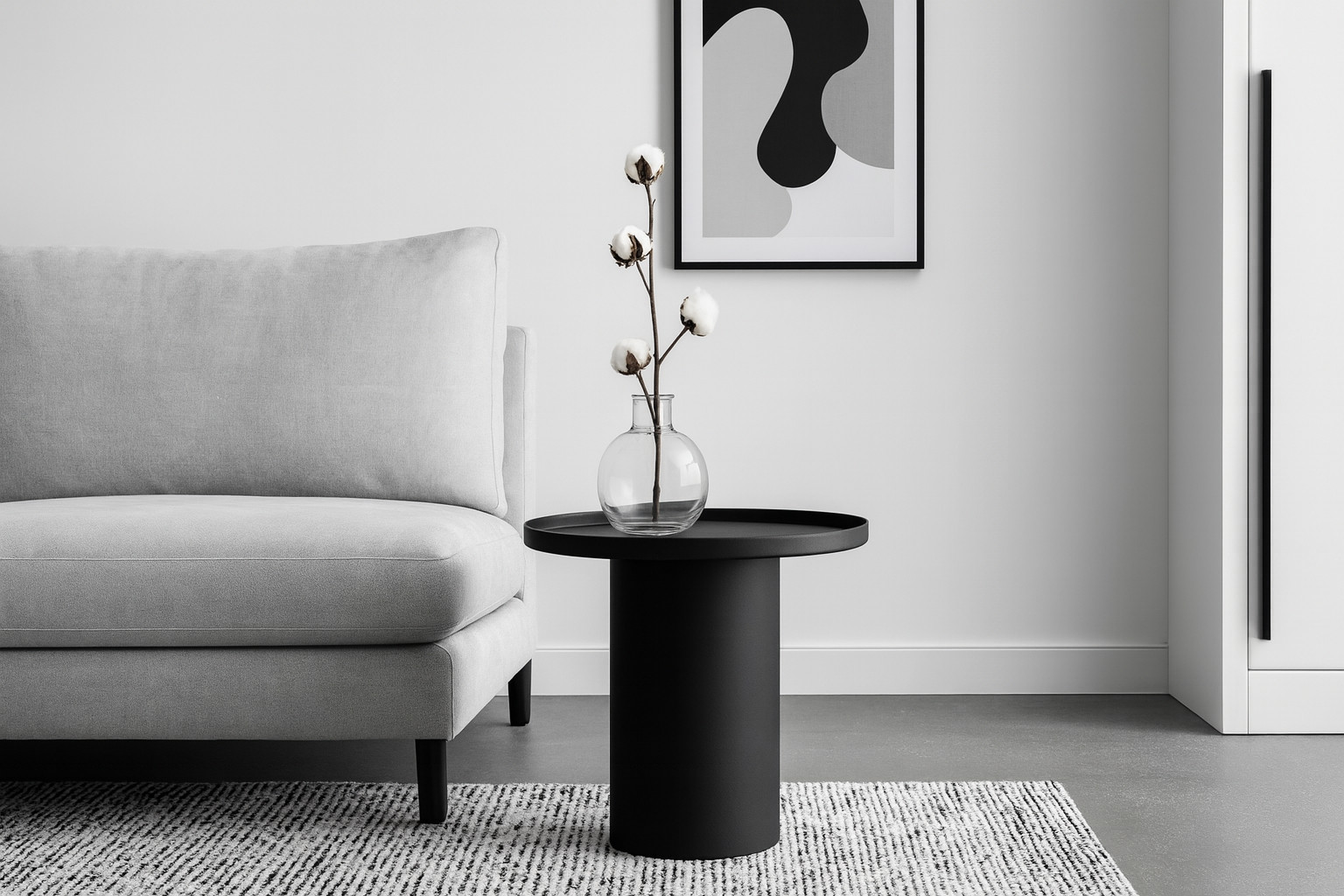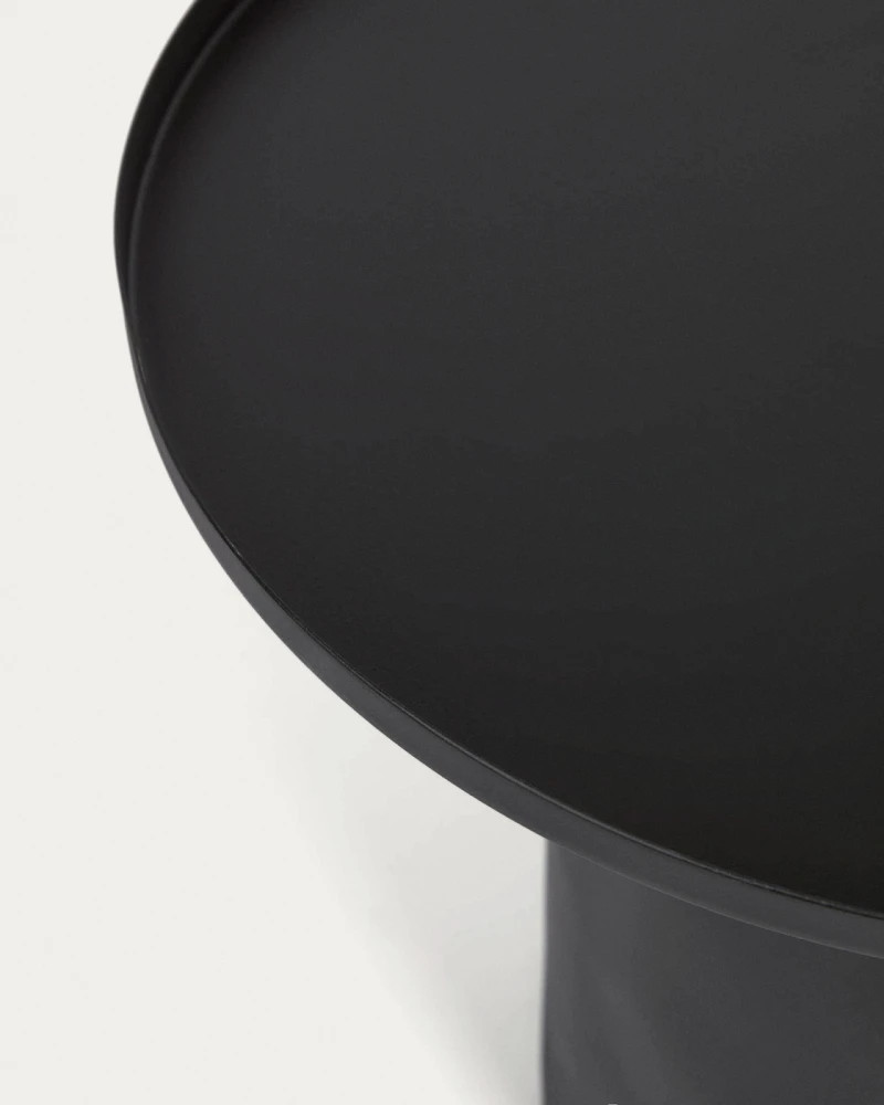 Журнальный столик Fleksa полностью сделан из металла. Он окрашен в серый или черный матовый цвет по методу порошкового покрытия. Такая технология обеспечивает идеальную поверхность. Цвет изделия зависит от выбранной модели. Края столешницы загнуты вверх, благодаря чему случайно пролитая жидкость не стечет на пол. Высота бортиков – 2 см. Широкое основание обеспечит устойчивость на любом покрытии и равномерное распределение нагрузки. Благодаря прочности металла, стол не деформируется от нагрузок, а сама поверхность легко чистится от загрязнений. В коллекции Fleksa представлено два стола с разными размерами.